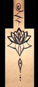 Other pertinent information: Blonde hair, blue eyes, tattoo of lotus flower on her chest (pictured below)